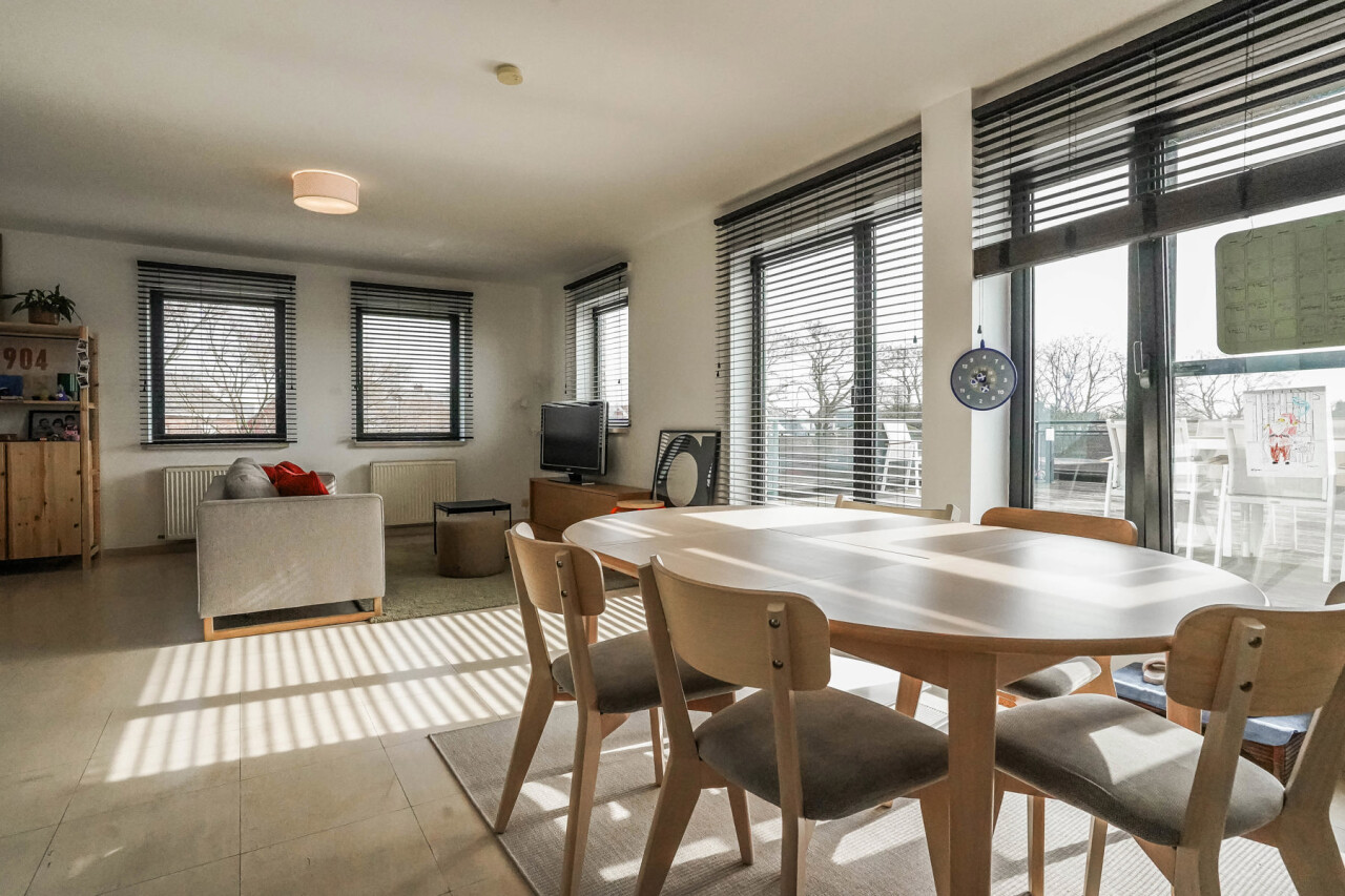 Dit lichtrijke duplex appartement is gelegen op de eerste verdieping, vlakbij het centrum van Londerzeel. Het appartement is uitstekend gelegen op slechts twee minuten van de autosnelweg Antwerpen Brussel en bevindt zich op fietsafstand van verschillende scholen en winkels. De indeling van het appartement is als volgt: op de eerste verdieping bevindt zich een inkomhal met gastentoilet, een ruime woonkamer met grote raampartijen die uitgeven op een zonnig terras van ca. 50 m² (zuidoost georiënteerd), een open keuken en een praktische berging. De tweede verdieping omvat een ruime badkamer uitgerust met een douchecabine, ligbad, dubbele wastafel en toilet. Daarnaast zijn er twee volwaardige slaapkamers en een handige stapelzolder. Het appartement wordt centraal verwarmd op aardgas. Extra troeven: het elektriciteitsverbruik is inbegrepen in de huurprijs via de aanwezige zonnepanelen en achteraan bevindt zich een private autostaanplaats en een overdekte fietsenstalling. Geen gemeenschappelijke kosten. Beschikbaar ten laatste vanaf 01/06/2026. Bezoekaanvragen per email via www.immorottiers.be