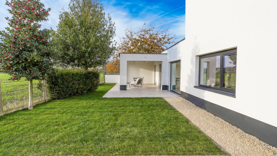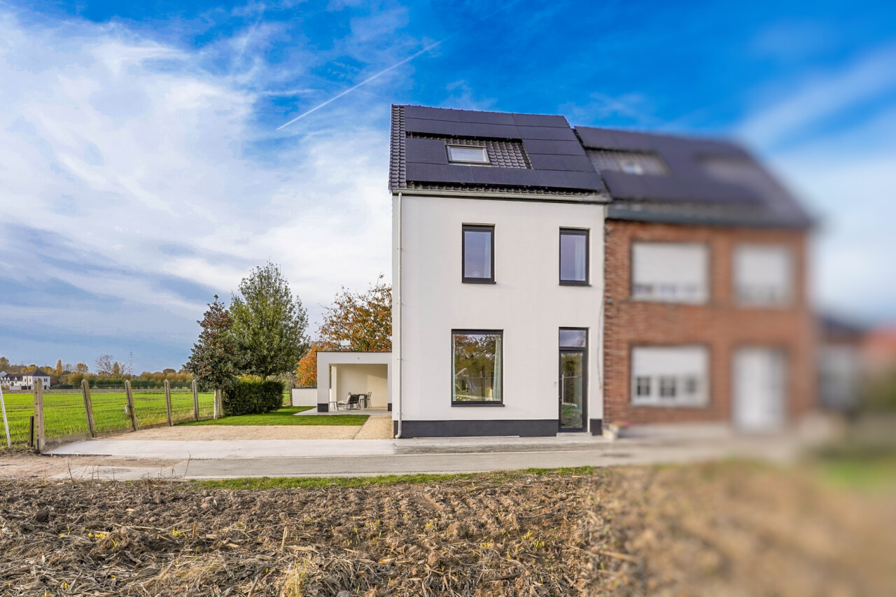 Op zoek naar een instapklare, zéér energiezuinige halfopen woning op een fantastische locatie? Dan voldoet deze woning gegarandeerd aan al jouw verwachtingen. Het voorbije jaar werd ze volledig getransformeerd tot een hoogwaardige (ver)nieuwbouw (EPC A), afgewerkt met oog voor detail en voorzien van alle moderne comfort. De locatie is werkelijk uitzonderlijk: achteraan in een doodlopende straat, zonder doorgaand verkeer, waar je optimaal geniet van rust en een prachtig uitzicht over de omliggende velden. Op wandel- en fietsafstand vind je openbaar vervoer, winkels, scholen en het station van Londerzeel. Kortom: een absolute topligging! Met een bewoonbare oppervlakte van 177 m² is de indeling perfect doordacht. Op het gelijkvloers bevindt zich de stijlvolle inkomhal, een gasten toilet, een zeer ruime leefruimte met open keuken, berging/wasplaats en technische ruimte. Op de 1ste verdieping heb je 2 slaapkamers en een badkamer met douche en toilet. Op de 2de verdieping bevindt zich de ruime master bedroom met ensuite badkamer, uitgerust met douche, ligbad en toilet. Extra troef? De woning beschikt over 2 parkeerplaatsen, een prachtige Z(W)-gerichte tuin en een fantastisch terras. Het overdekte gedeelte van het terras biedt de ideale plek om te genieten van lange, zonnige avonden met zicht op het omliggende groen. Deze woning is uiterst energiezuinig en volledig klaar voor de toekomst, met een mooi EPC-label A. Dit dankzij onder meer lucht-water-warmtepompen met vloerverwarming, zonnepanelen en airconditioning. Mis deze zeldzame kans niet! Alle plannen en een videorondleiding zijn terug te vinden op onze website www.immorottiers.be. Bezoeken zijn enkel mogelijk na afspraak per email op info@immorottiers.be